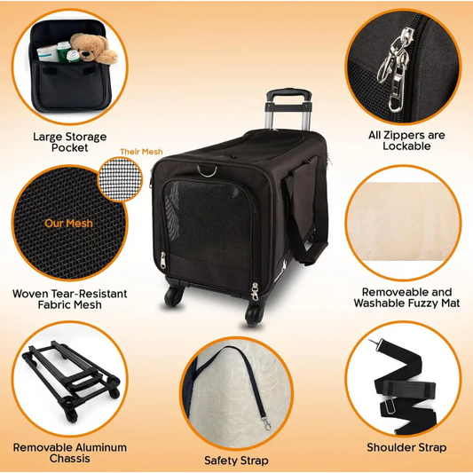 Airline-Compliant Pet Carrier | For pets up to 20lbs | Detachable wheels and trolley